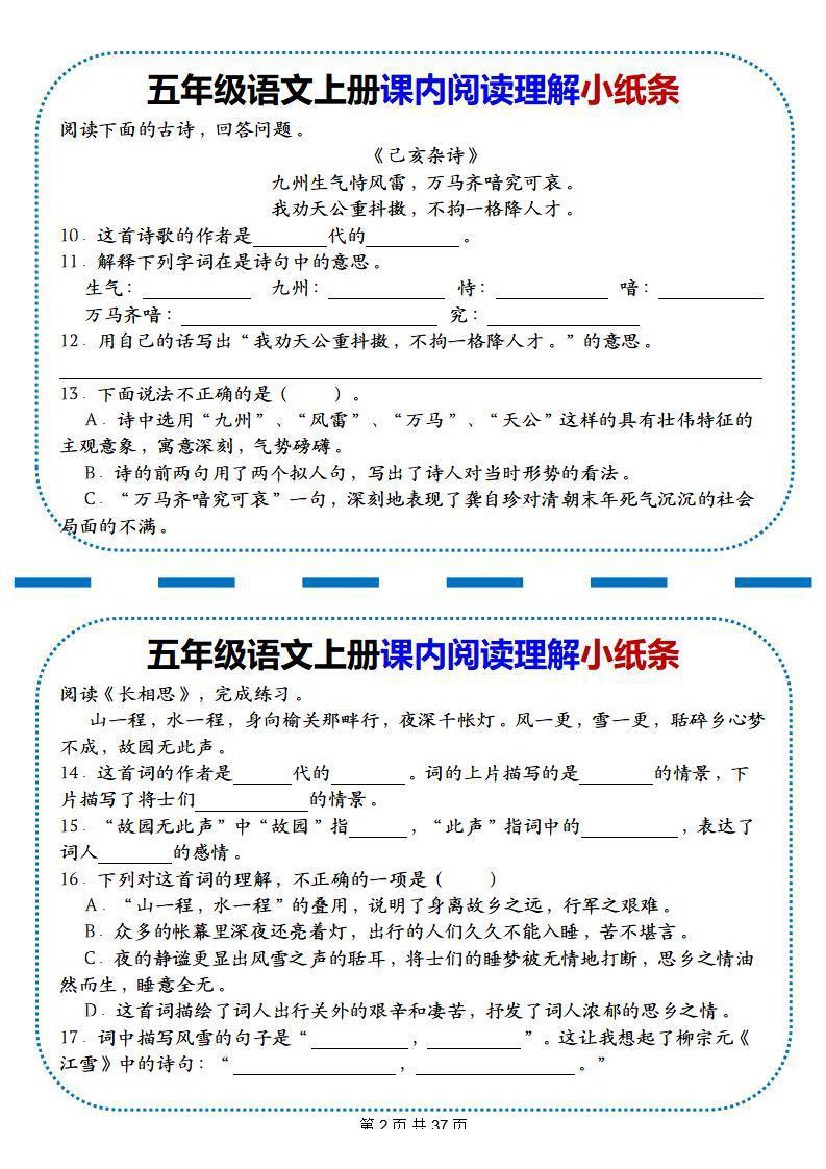 首页 > 全部 > 阅读理解 > 五上语文【课内阅读理解专项练习(59篇)】