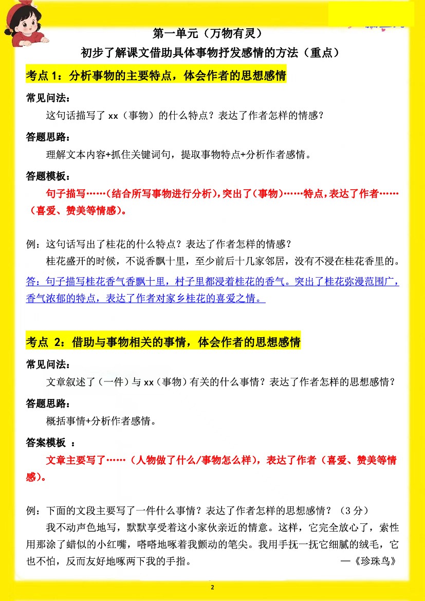 小学 五上语文【阅读理解与答题模板(含答案)】