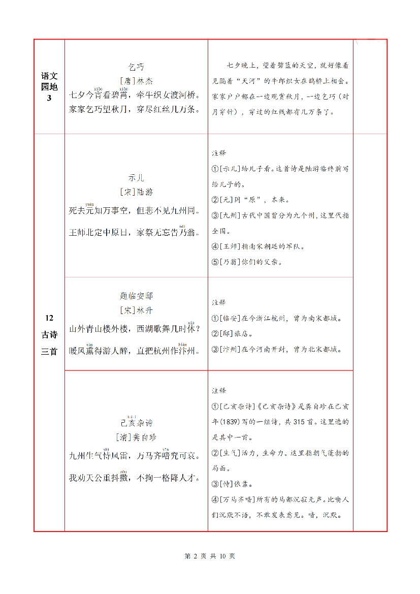 五年级(上)语文必背内容+默写表