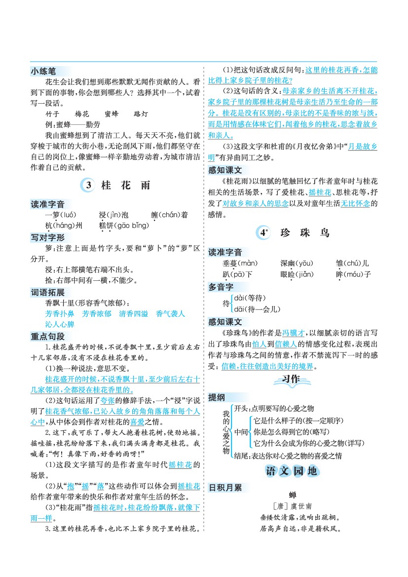 小学 54制五年级语文上册第1-8单元核心考点清单