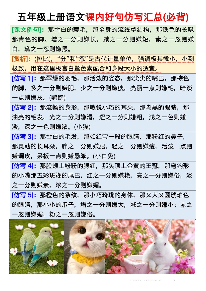 小学 【1-8课(课内好句仿写汇总)】五上语文