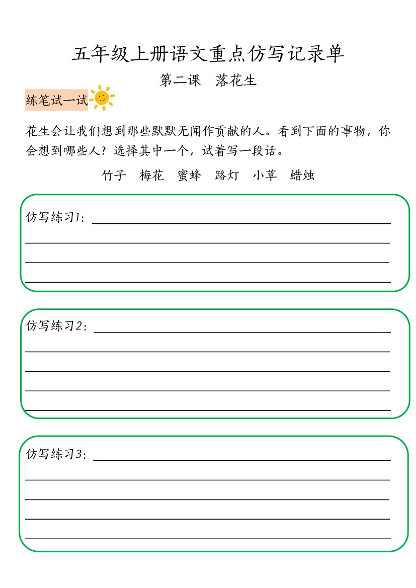 首页 > 全部 > 专项练习 > 五(上)语文重点句子仿写记录单