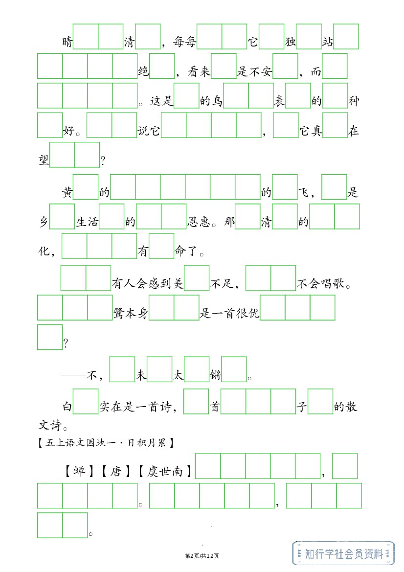 首页 > 全部 > 专项练习 > 五年级上册语文背记专项填空
