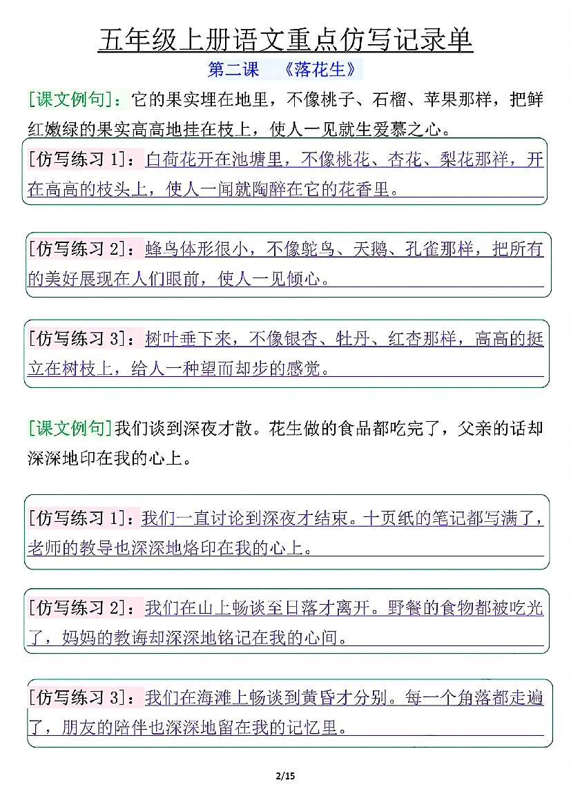 五上【仿写】重点仿写记录单(练习+答案30页)