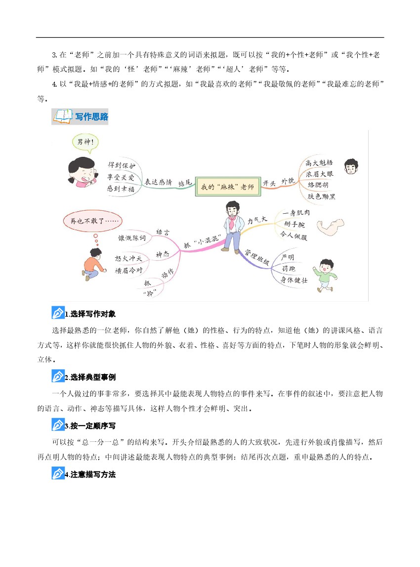 人教部编版五年级语文上册第2单元同步作文:“漫画”老师-写作指导+范文赏析+病文升格-部编版语文五年级上册