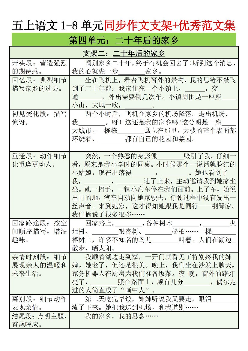 首页 > 全部 > 作文天地 > 五年级上册语文4单元作文支架+优秀范文