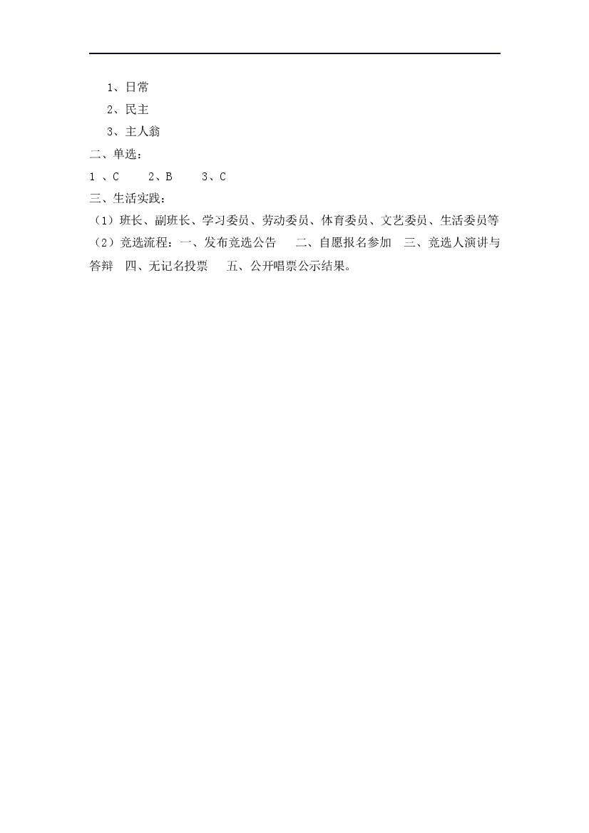 小学 【一课一练】第四课 选举产生班委会 五年级上册道德与法治 人教部编版(含答案)