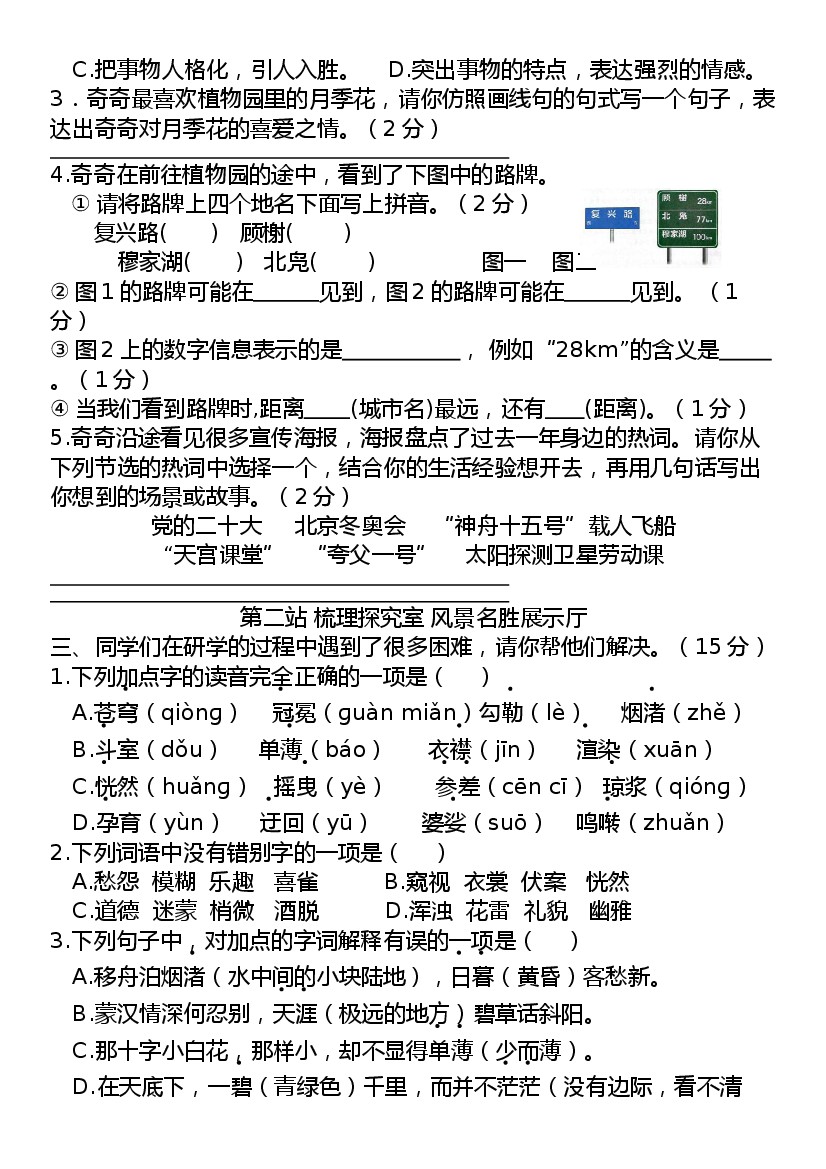 首页 > 全部 > 单元测试 > 《2025-2026学年上学期第一单元情境自测卷六年级语文》