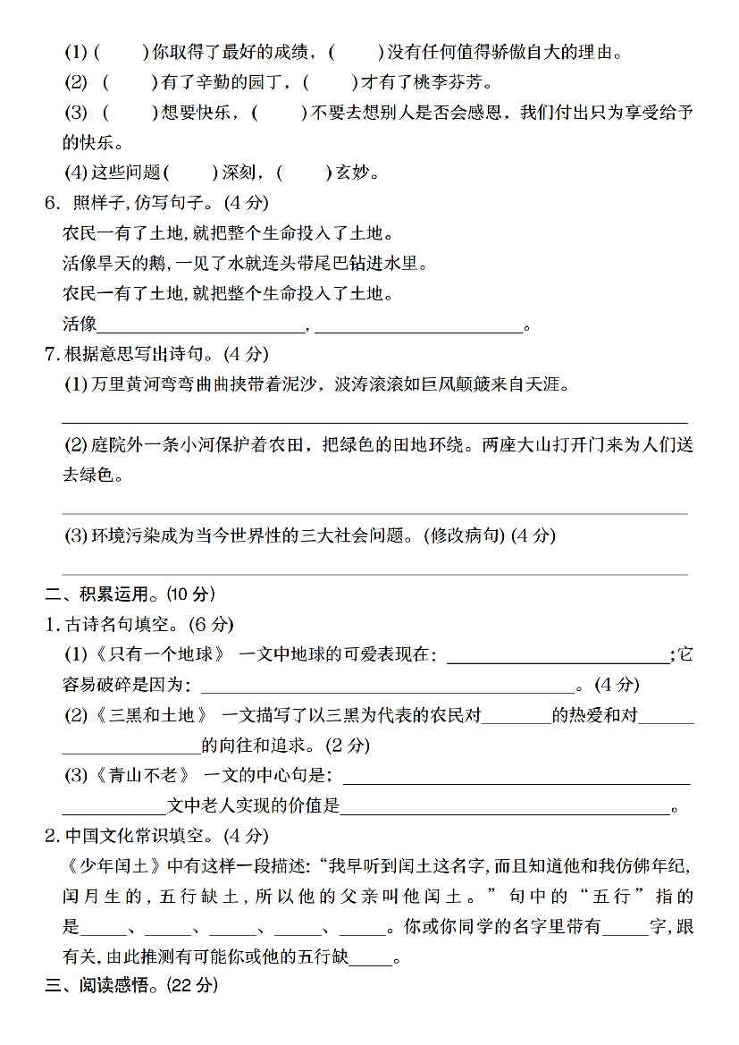 小学 《2024-2025学年六年级上册第六单元综合测试语文试卷A》统编版 (2)