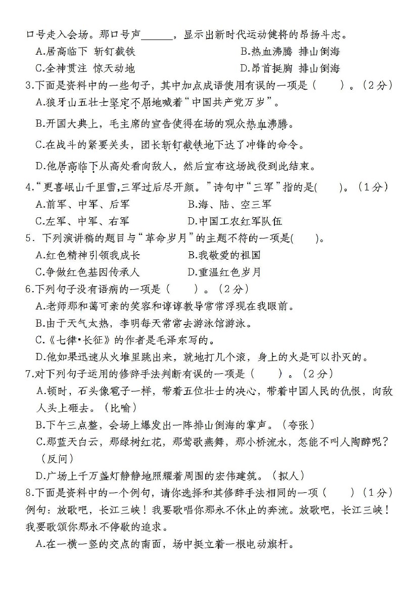 小学 《2025-2026学年上学期第二单元情境自测卷六年级语文》