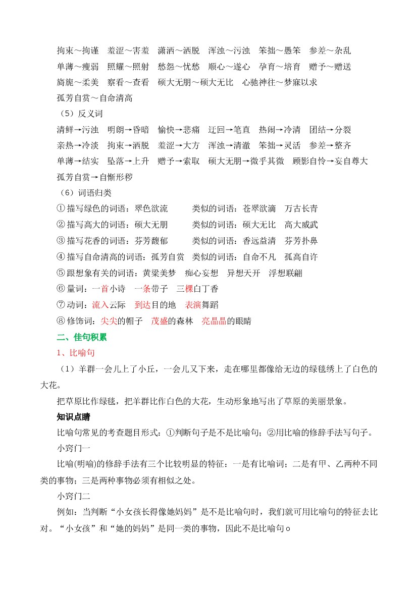 小学 25年秋六上语文第一单元核心知识点