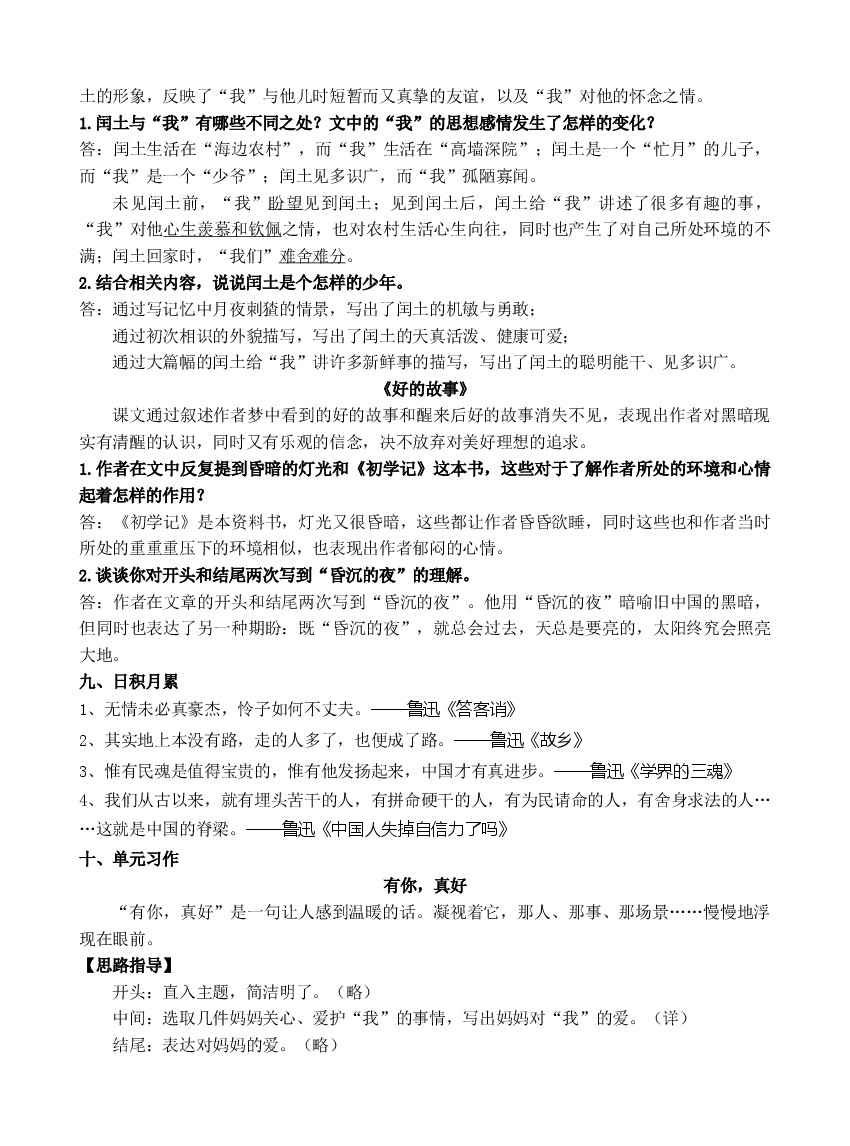 第八单元(知识盘点+单元测试)—部编版六年级上册(含答案)