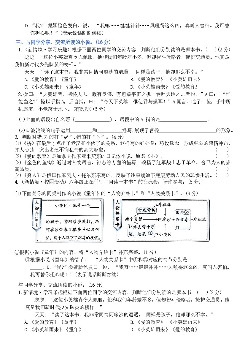 首页 > 全部 > 单元测试 > 六上语文第四单元情景卷+答案7页