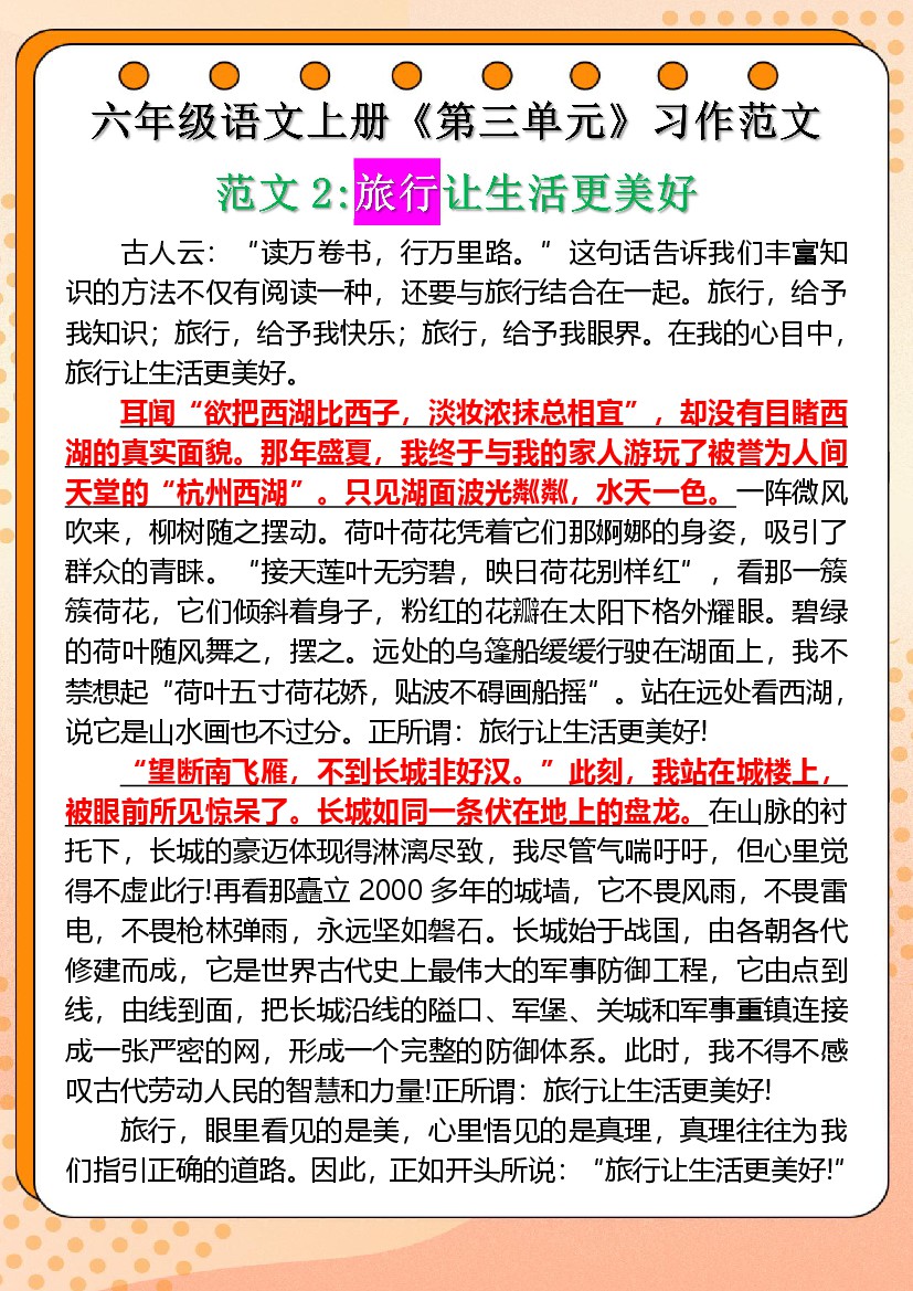 首页 > 全部 > 单元测试 > 六年级语文上册《第三单元》习作范文.