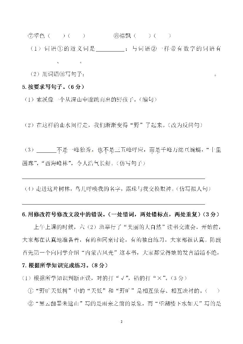 首页 > 全部 > 单元测试 > 六(上)语文第一单元检测试卷(三)