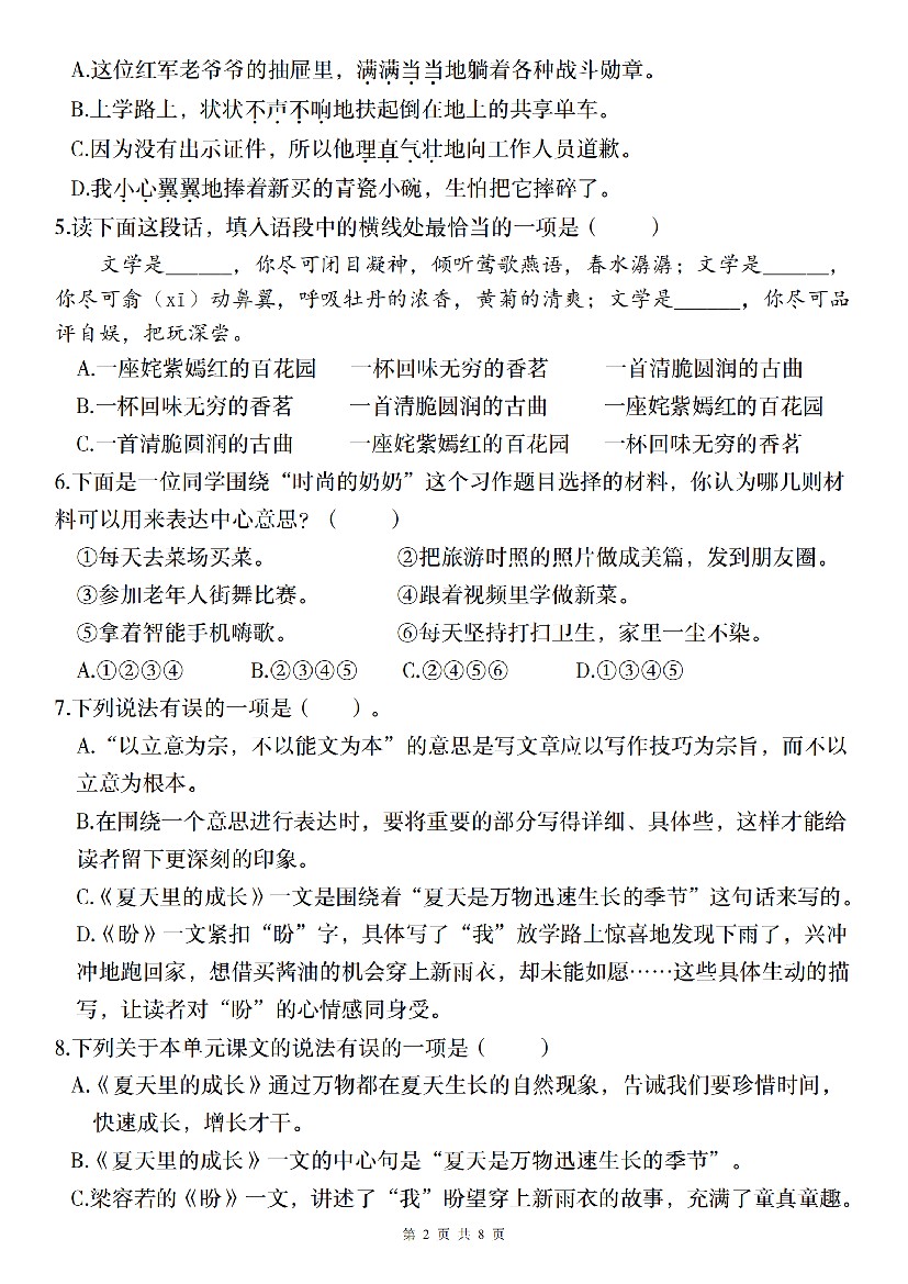 六年级(上)第五单元情境自测卷