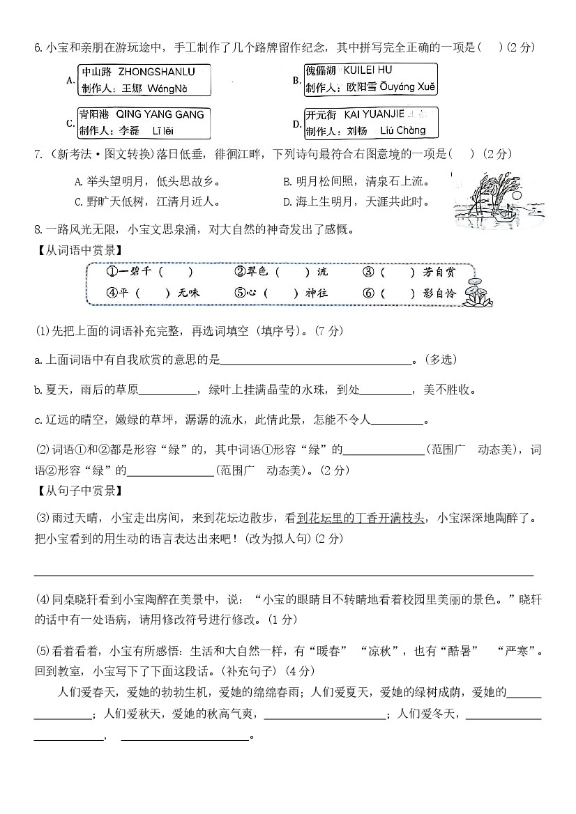 首页 > 全部 > 单元测试 > 六上语文第一单元情景卷+答案7页