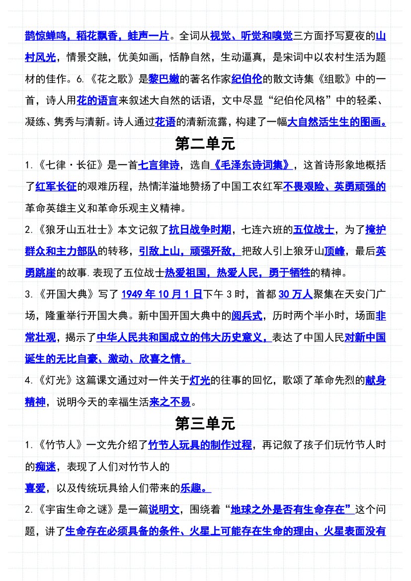 小学 《必掌握课文重点梳理汇总》五升六语文