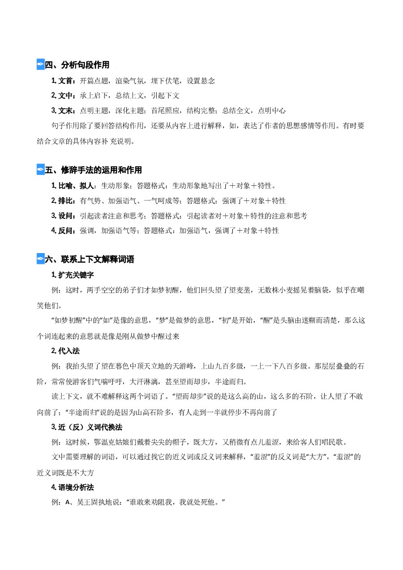 小学 五升六暑假衔接语文知识点专题13 课外阅读(讲义+试题)