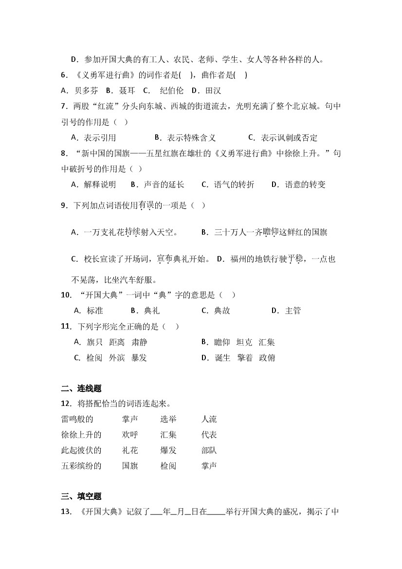 首页 > 全部 > 课时练习 > 7 开国大典 -语文六年级上册(统编版)