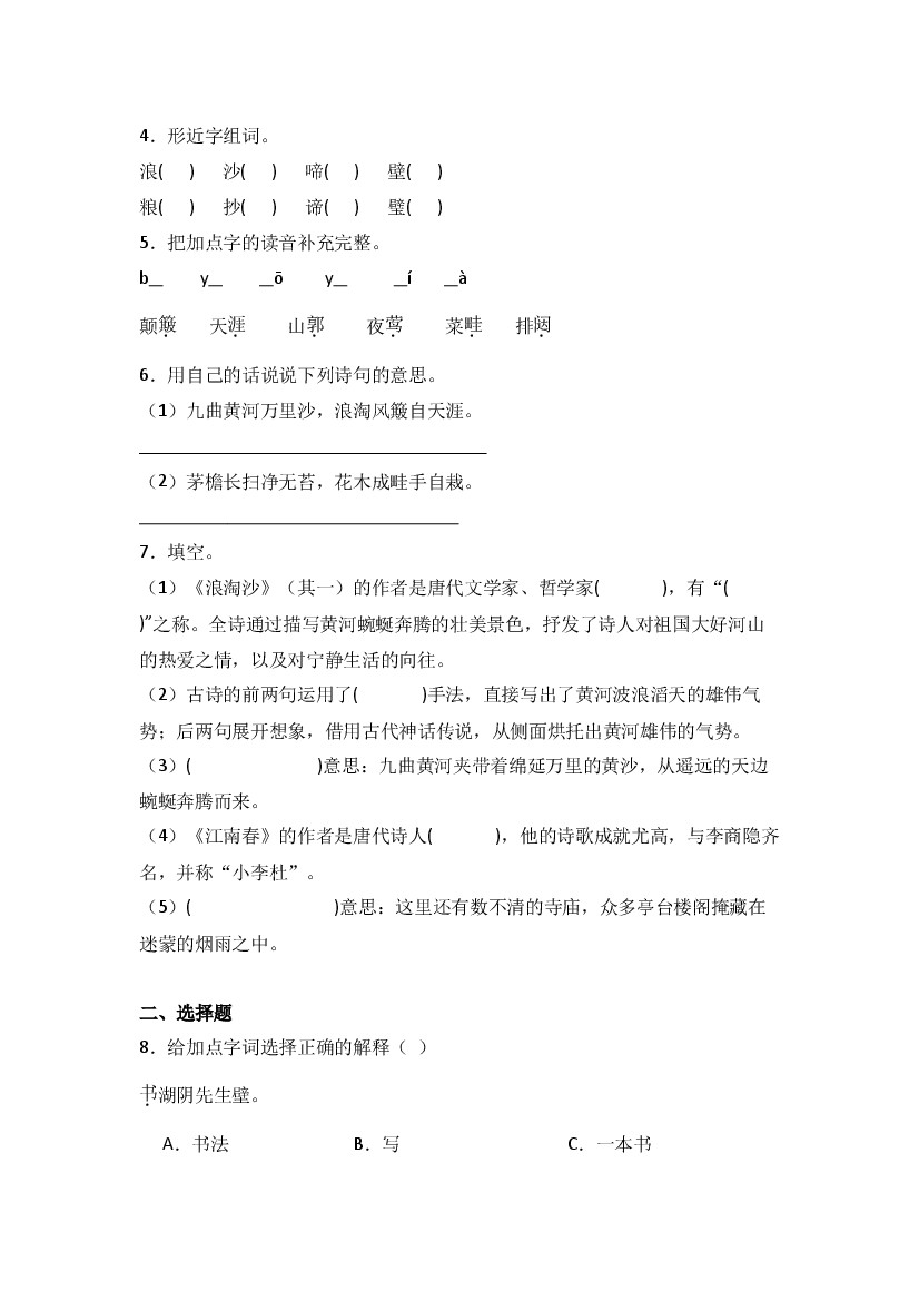 首页 > 全部 > 课时练习 > 18 古诗三首 -语文六年级上册(统编版)