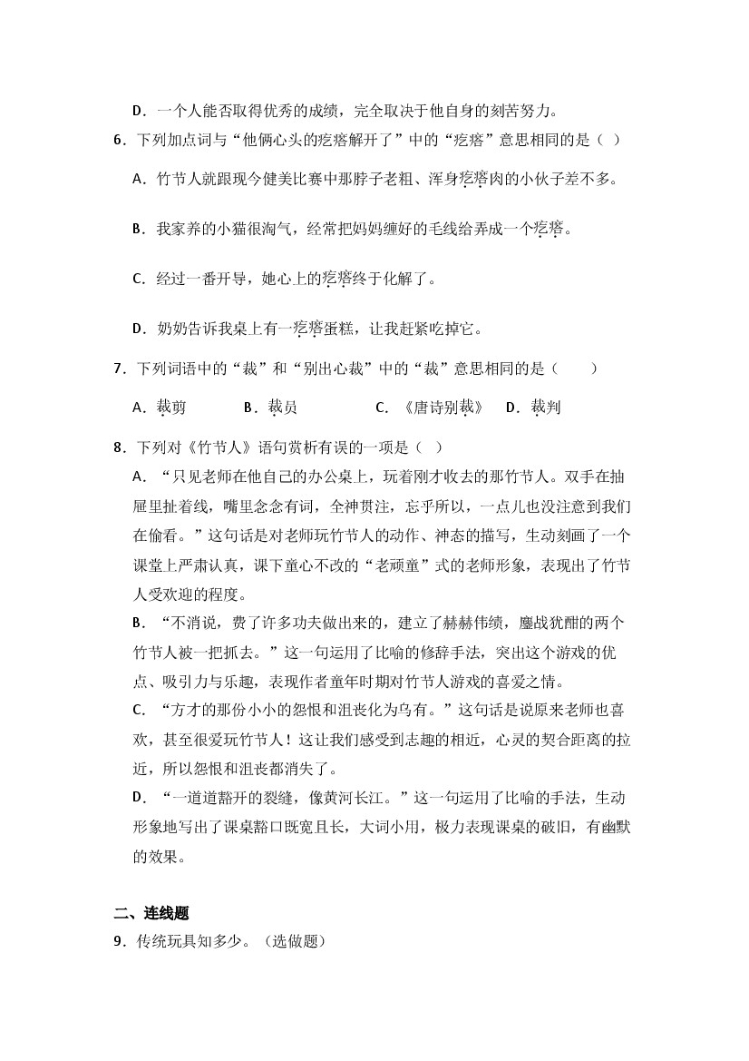 首页 > 全部 > 课时练习 > 10 竹节人 -语文六年级上册(统编版)