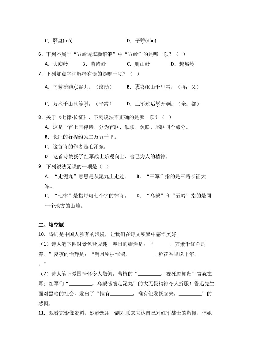 首页 > 全部 > 课时练习 > 5 七律·长征 -语文六年级上册(统编版)