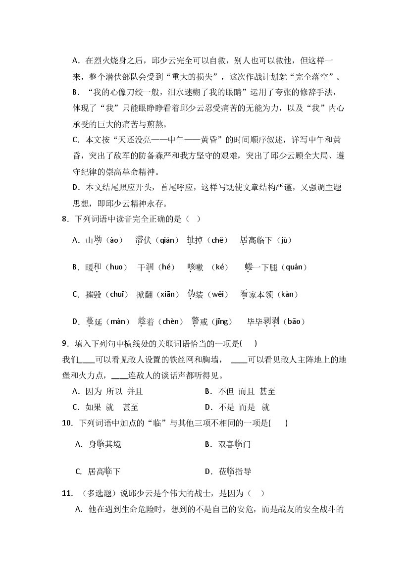 首页 > 全部 > 课时练习 > 9 我的战友邱少云 -语文六年级上册(统编版)