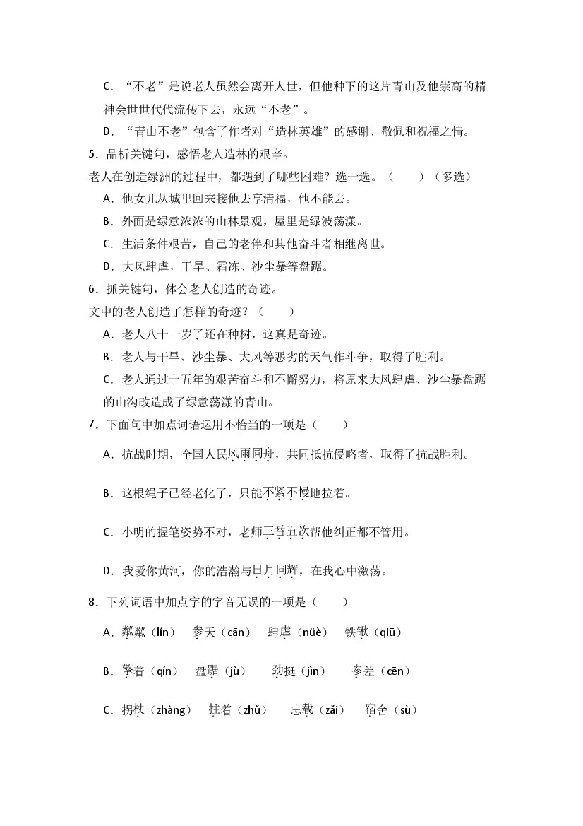 首页 > 全部 > 课时练习 > 20 青山不老 -语文六年级上册(统编版)