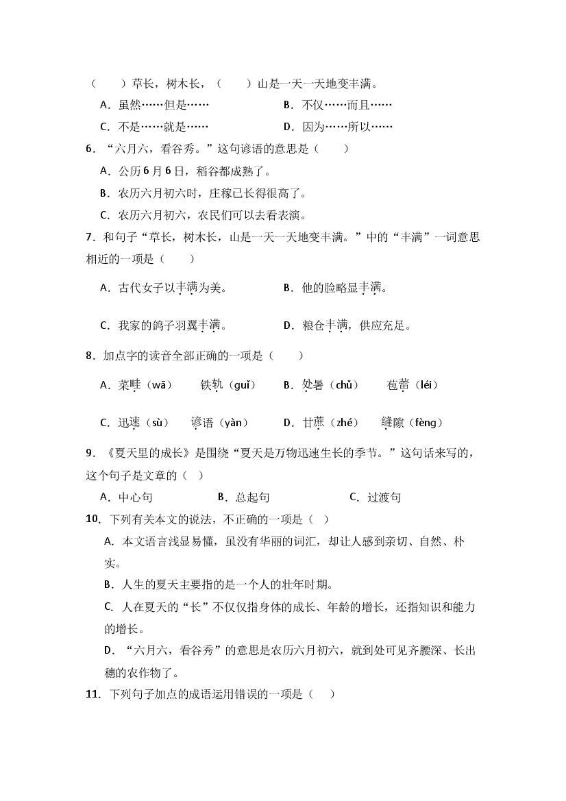 首页 > 全部 > 课时练习 > 16 夏天里的成长 -语文六年级上册(统编版)