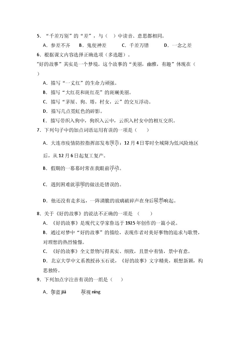 首页 > 全部 > 课时练习 > 26 好的故事 -语文六年级上册(统编版)
