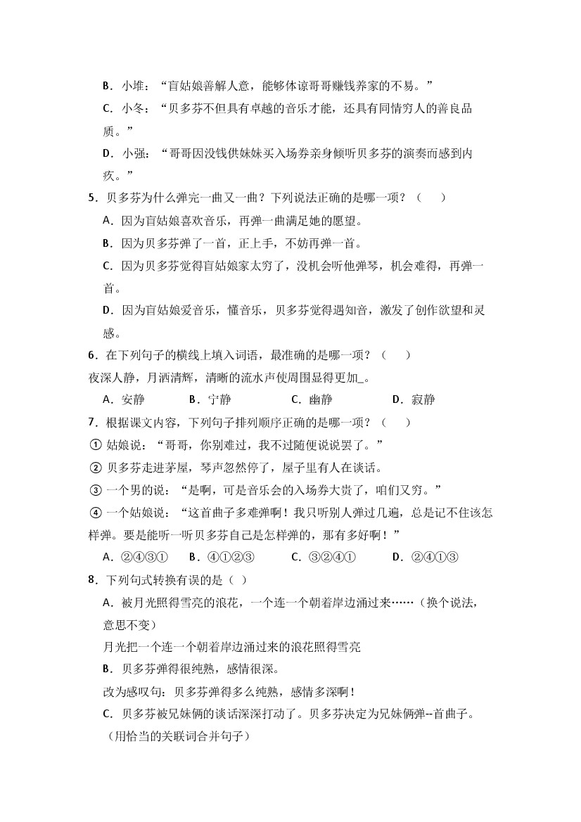 首页 > 全部 > 课时练习 > 23 月光曲 -语文六年级上册(统编版)