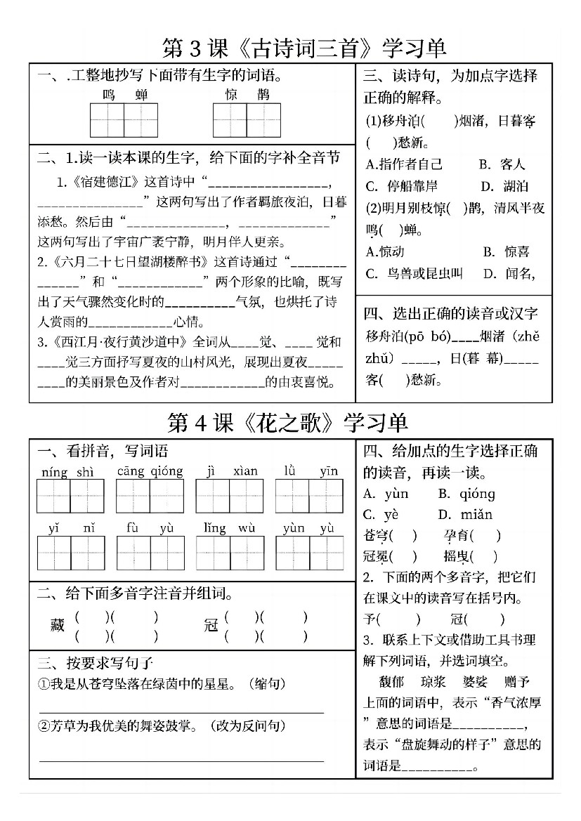 首页 > 全部 > 课时练习 > 六年级(上)语文学习单