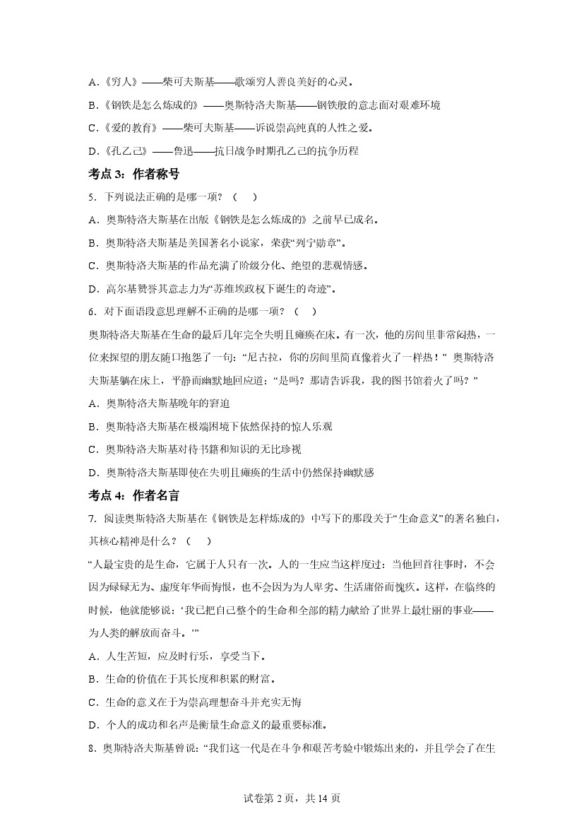 统编版语文六年级上册整本书阅读:钢铁是怎么炼成的