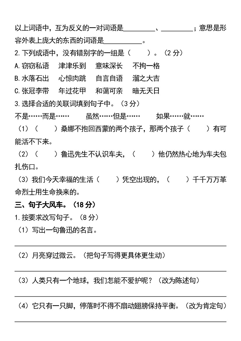 首页 > 全部 > 期末试卷 > 六(上)语文期末真题测试卷