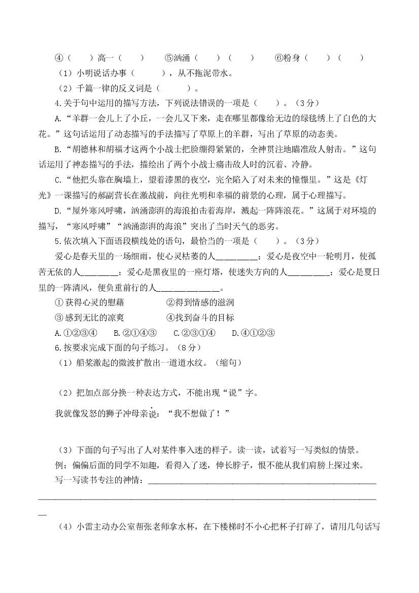 25年秋六上语文期中素养测评提高卷(二)(统编版)A4版