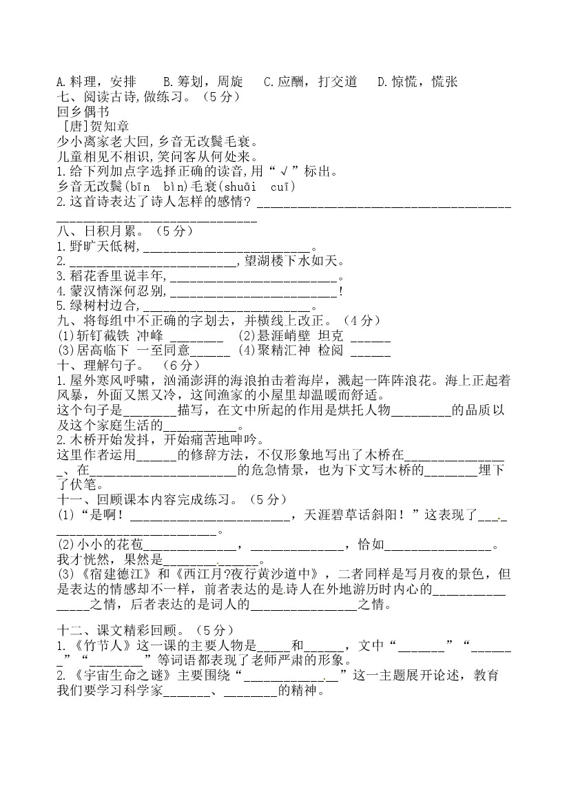 小学 【精品】部编版六年级语文期中综合提升测试B卷 (含答案)