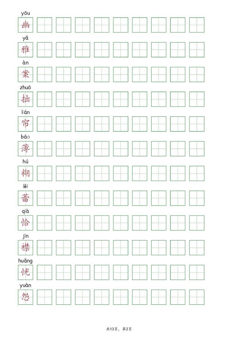 2025年6年级上册语文【抄写-写字表】(13页)