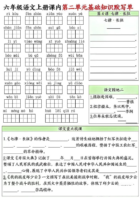 首页 > 全部 > 知识要点 > 六上语文课内1-8单元基础知识默写单8页