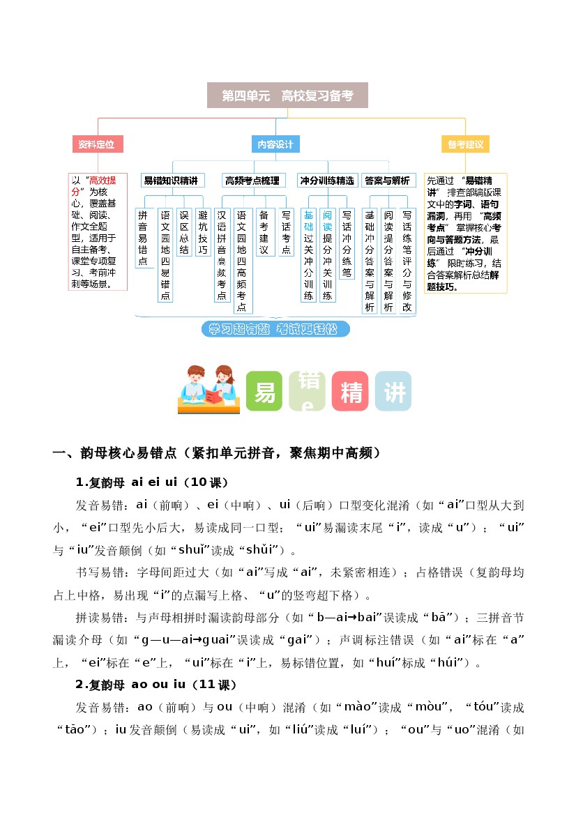首页 > 全部 > 知识要点 > 第四单元 拼音王国(易错精讲+高频考点+重点训练)一年级语文上册期中高效复习备考(统编版·新教材)