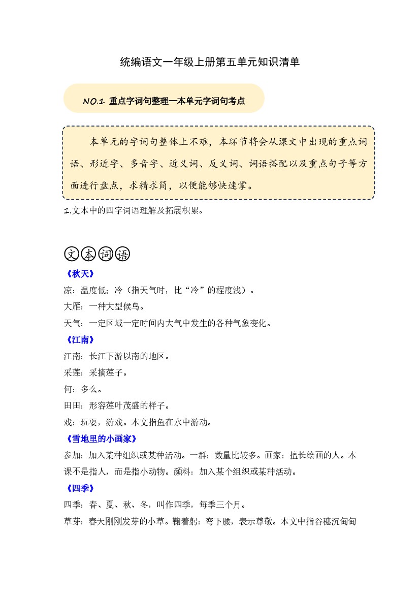 首页 > 全部 > 知识要点 > 一年级(上)语文 第五单元知识清单《统编版》