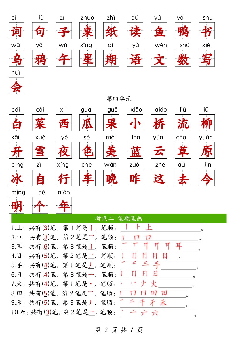 首页 > 全部 > 知识要点 > 一年级(上)语文 期中六大考点专项训练
