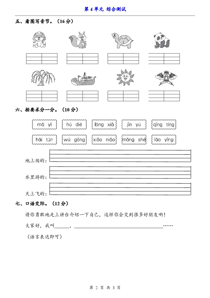首页 > 全部 > 单元测试 > 新一年级上册语文第四单元综合测试卷3页