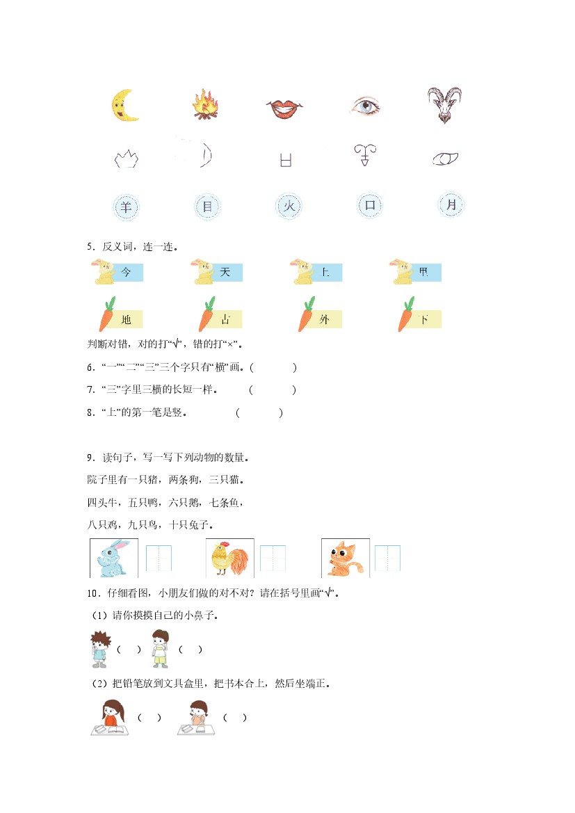 首页 > 全部 > 单元测试 > 语文一年级上册第一单元测试B卷(1)