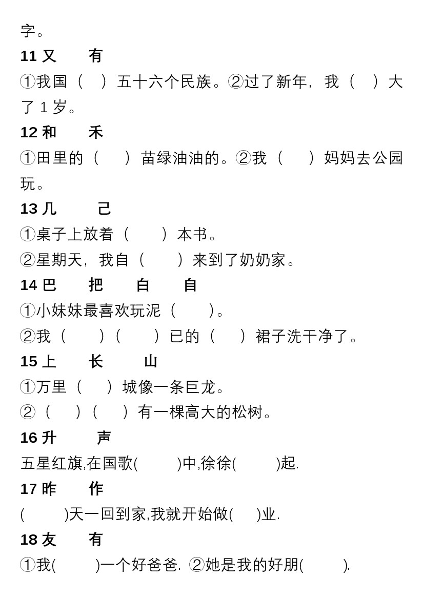 首页 > 全部 > 基础字词 > 一上语文选字填空练习