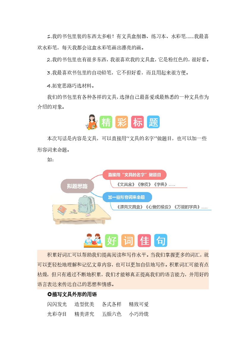 一年级(上)语文 第六单元写话:书包里的文具(素材积累)《统编版》