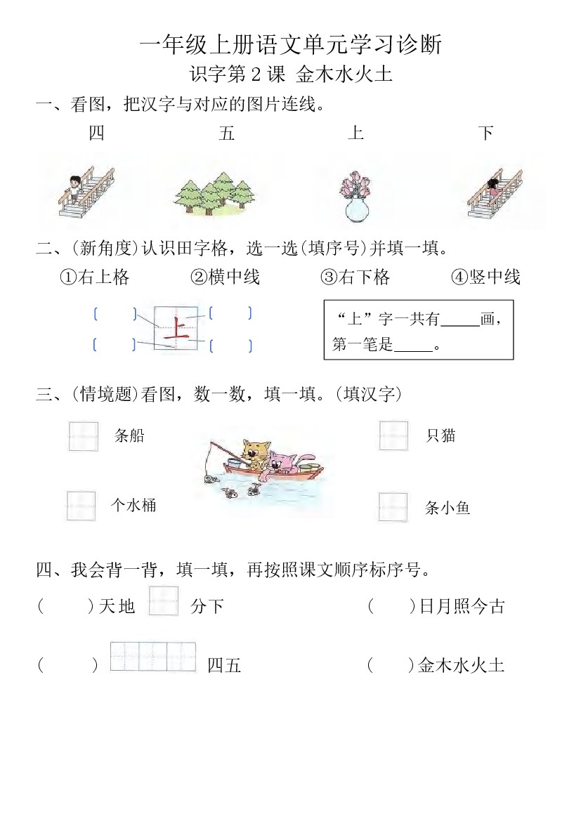首页 > 全部 > 课时练习 > 【第一单元(一课一练)】一上语文