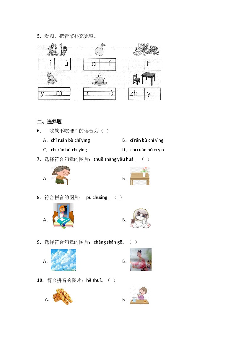 首页 > 全部 > 课时练习 > 8 zh ch sh r 同步分层作业-一年级上册语文(统编版)