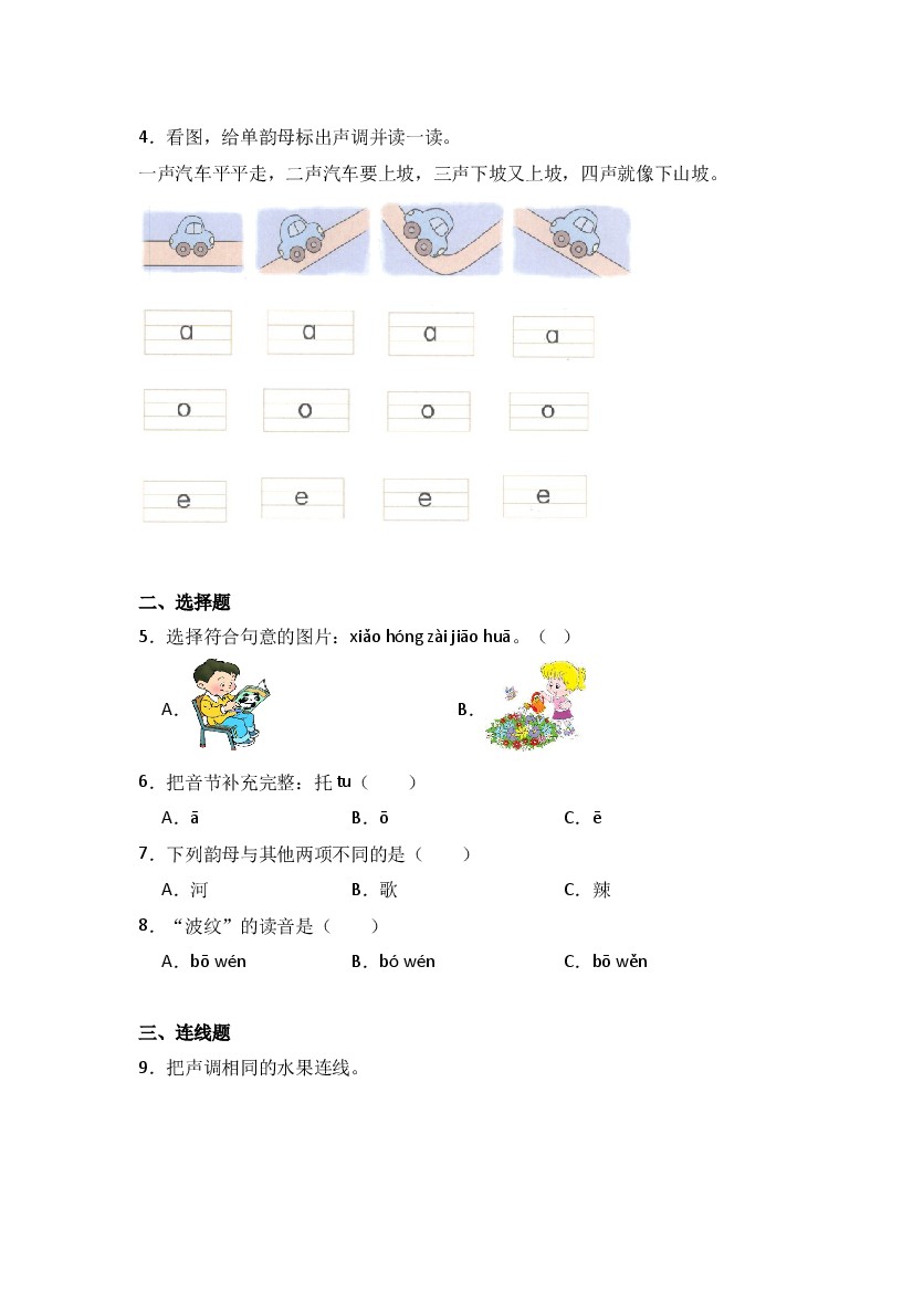 首页 > 全部 > 课时练习 > 1 a o e 同步分层作业-一年级上册语文(统编版)