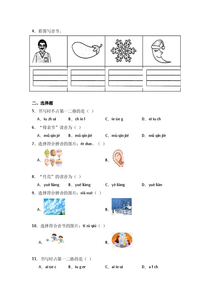 12 ie üe er 同步分层作业-一年级上册语文(统编版)